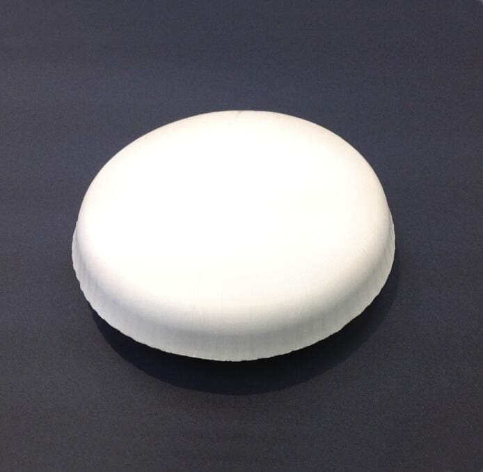 150mmΦドーム型。フタと本体の1セット。円形でドーム状にフタが膨らんでいる。円形のモチーフデザインを全面に印刷可能。過去テストデザインとして、果物、ボールなどを描いてアイキャッチ性の高い形状となった。